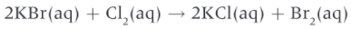 Example 2: 2Br- (aq) + Cl2 (aq) Br2 (aq) + 2Cl- (aq)
