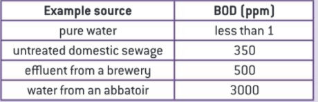 The degree of organic pollution in a sample of water can be quantitated by the biochemical oxygen demand(BOD) measured in ppm(parts per million)