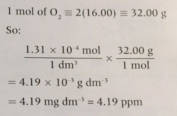 Find the concentration of dissolved oxygen, in ppm, in the water sample